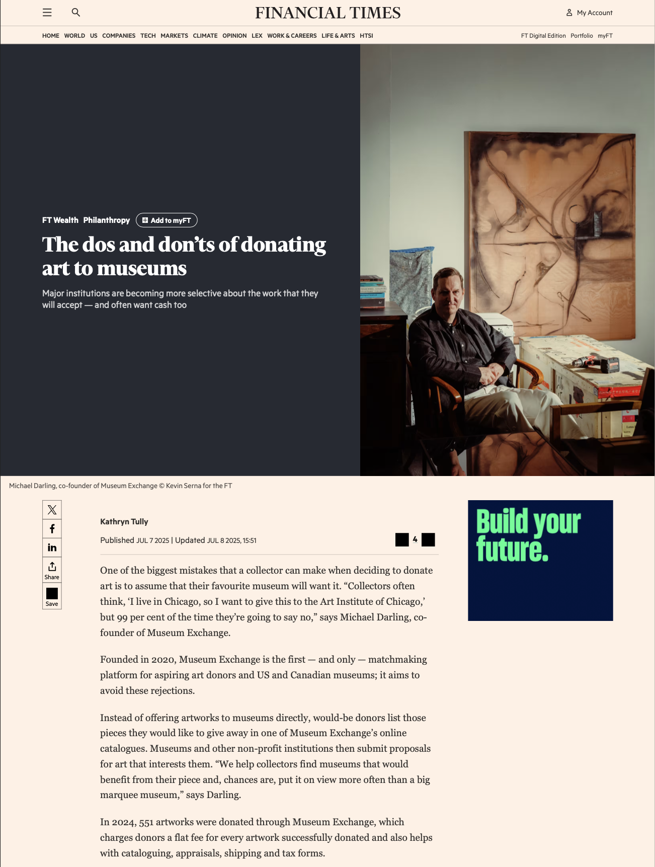 “Museum Exchange is evolving the ways in which museums consider and receive gifts of works of art to their collections. This unique and engaging platform has democratized the collector-museum relationship, providing a means for enabling serious collectors to place stellar works of art with worthy museum collections.”