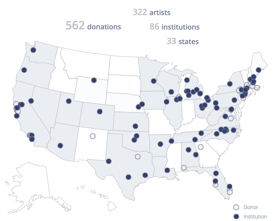With another year of donations finalized, we are thrilled to share our Year in Review 2025. It was truly a milestone year as we celebrated Museum Exchange's five-year anniversary! Thanks to your generosity and belief in our mission, Museum Exchange has grown into a thriving ecosystem numbering over 900 donors and more than 400 museums, 50 hospitals, and 15 universities spanning 48 U.S. states and 5 Canadian provinces. Together, this dynamic partnership has generated over 2,000 gifts of art, and we are starting to see real shifts in how collectors support institutions and, in turn, how public collections are built.