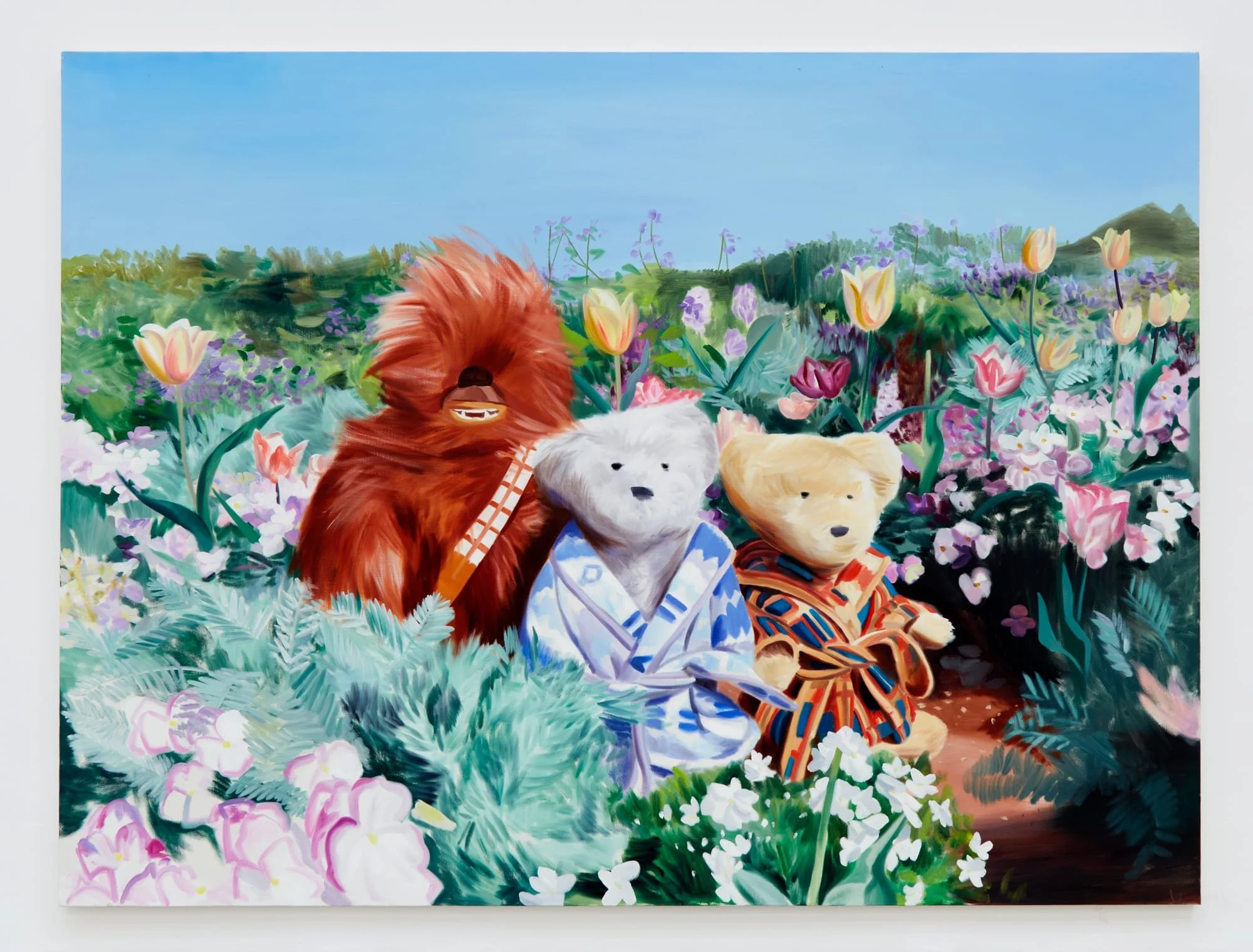 Ulala Imai, Care, 2022, oil on canvas, 76 3/8 x 102 1/8 inches. Collection of The Gund at Kenyon College, Gambier, OH; Gift of Laura and Stafford Broumand.