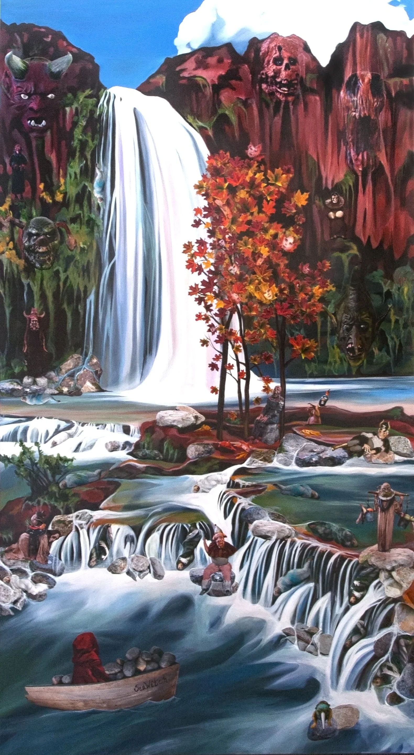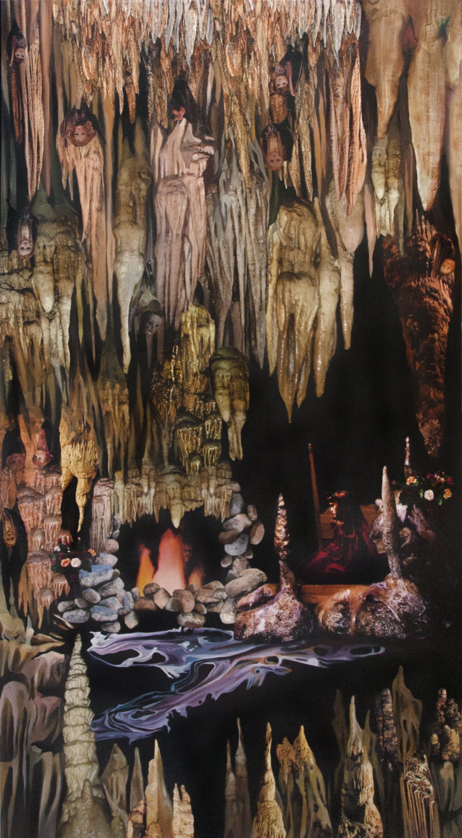 Marnie Weber, The Cavern of Untold Secrets, 2013; The Waterfall of Forevermore, 2013; The Goodnight Garden, 2012; collage and acrylic paint on panel, 66 x 36 x 2 1/2 inches (each). Collection of Laguna Art Museum, Laguna Beach, CA; Gift of the Shaw Weber Family Trust.
